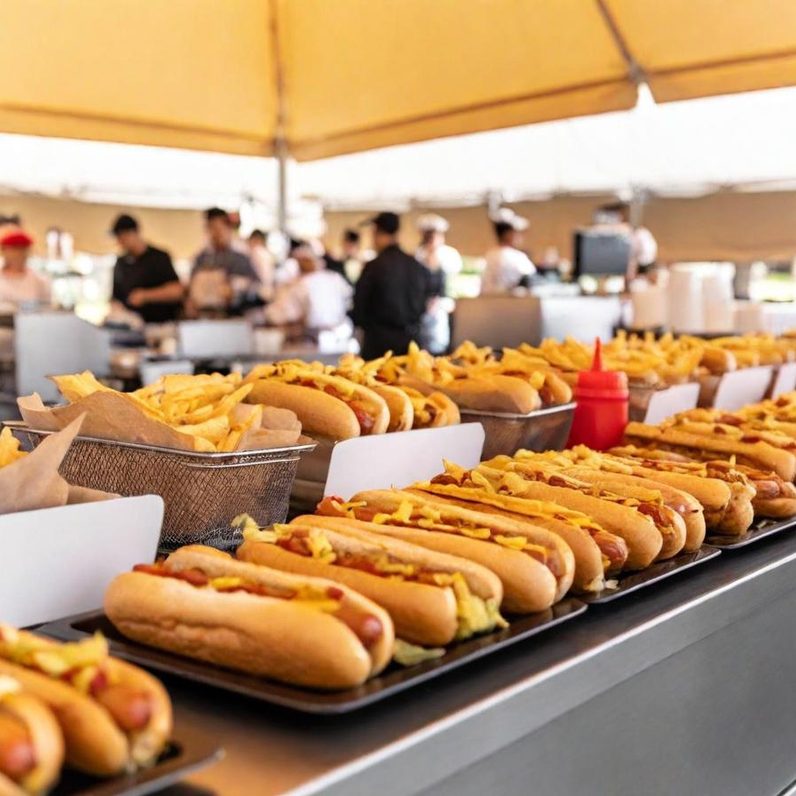 Wir bieten eine einfache und leckere Verpflegung für Events jeder Größe. Unsere frisch zubereiteten Pommes, Hotdogs und gekühlten Getränke sind perfekt für Veranstaltungen mit vielen Gästen.